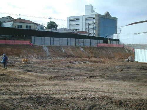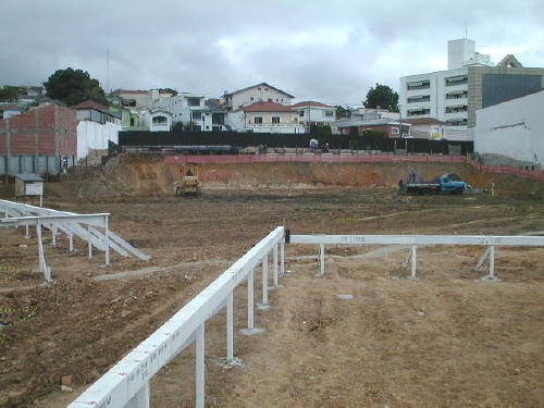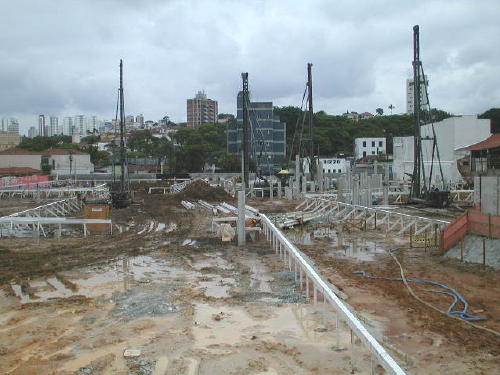 | - Foto em 29/08/06 - Cravação de perfis metálicos na periferia. | |