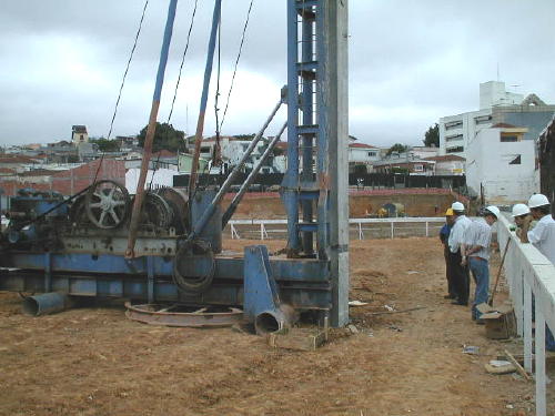 | - Foto em 10/08/06 - Cravação de perfis metálicos na periferia, junto a Av.Conceição. | |