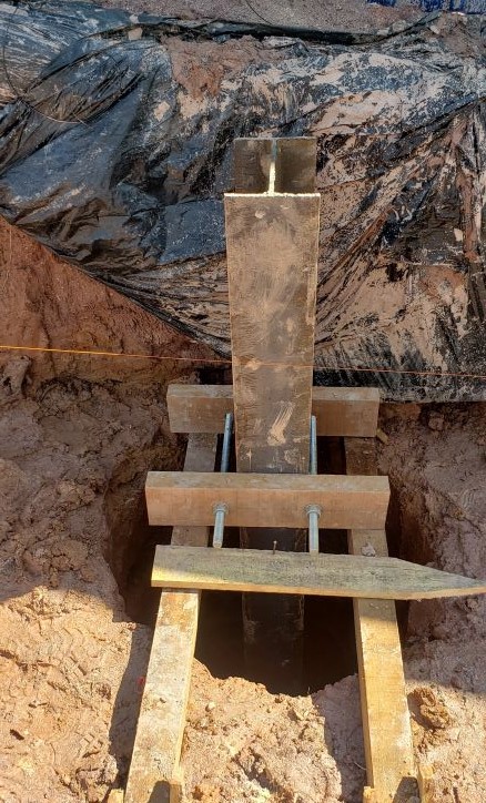| - Foto em 15/04/2025 - Detalhe do sistema de implantação dos perfis nos tubulões. | |