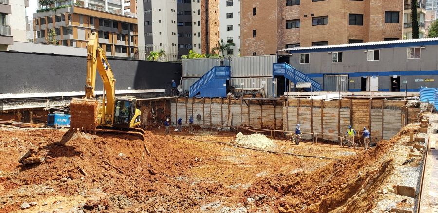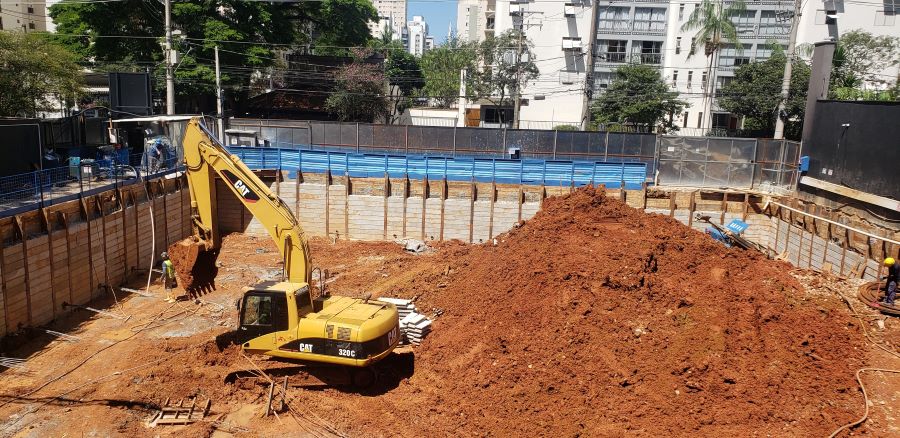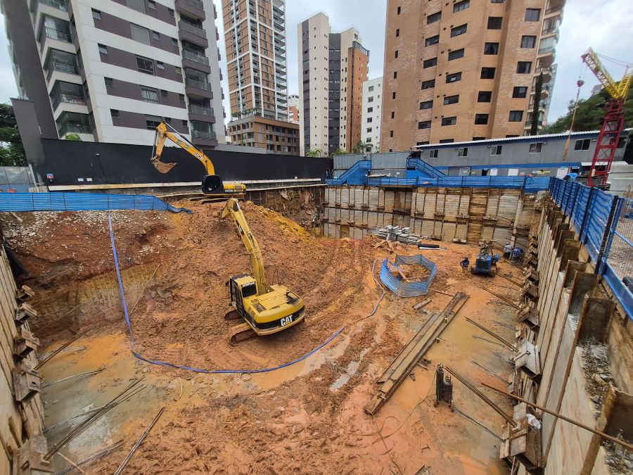| - Foto em 29/01/2026 - Fundação finalizada e escavando o 1o.SS com colocação de placas PM nas cortinas. | |
