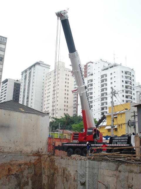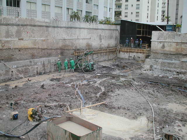| - Foto em 20/06/2008 - Diafragma concluída, e escavação das estacas barrete. | |