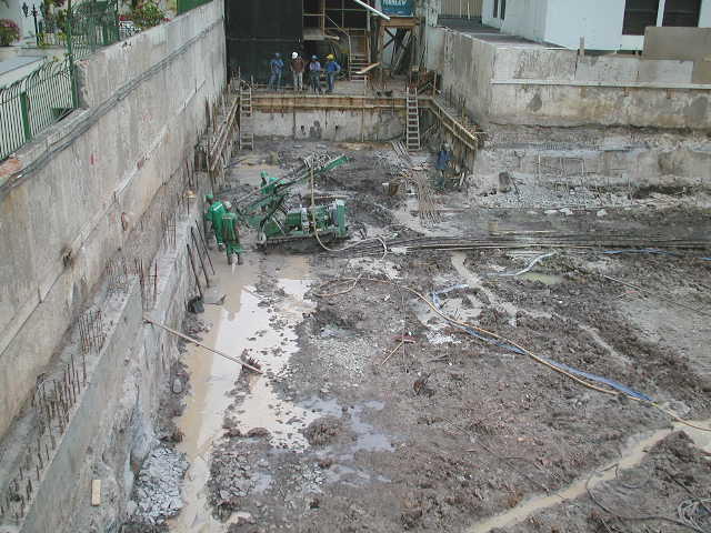 | - Foto em 04/09/2008 - Escavando para a 2a. linha de ancoragens. | |