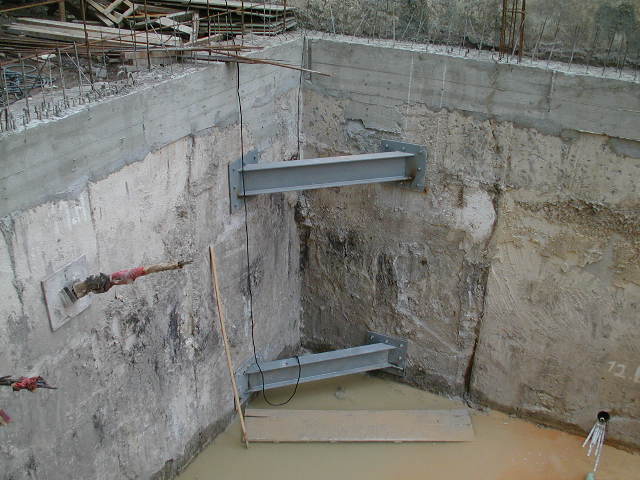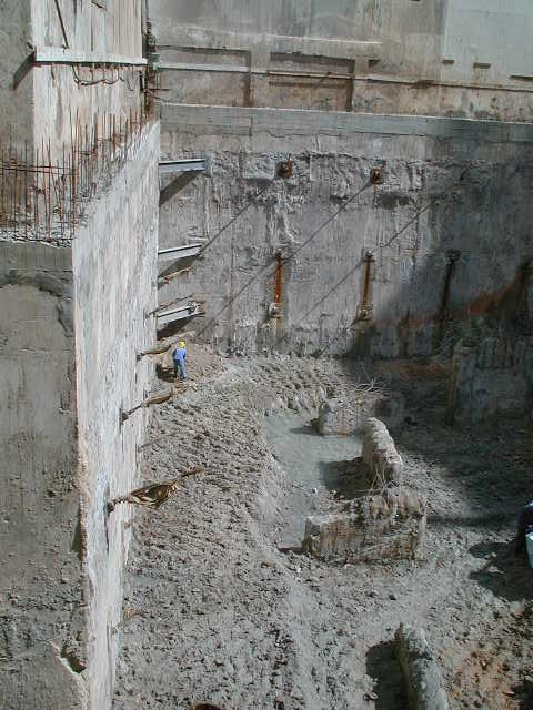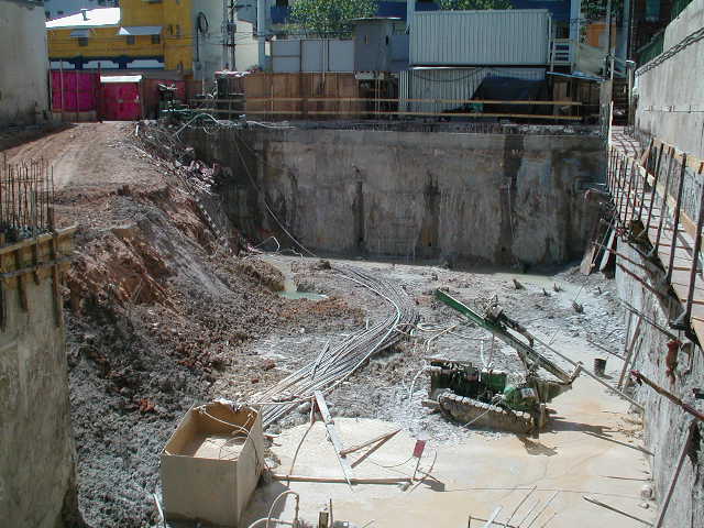 | - Foto em 18/09/2008 - Remoção parcial da rampa para execução dos tirantes. | |