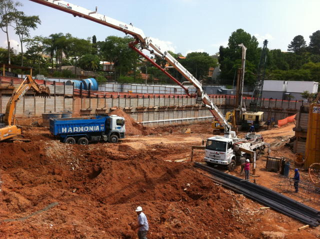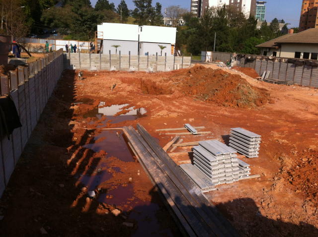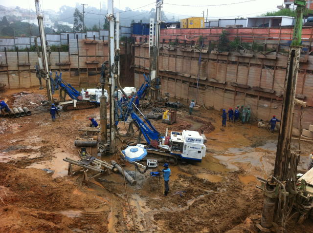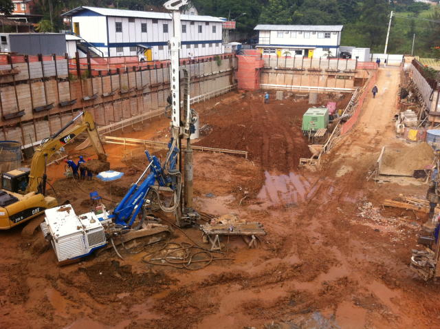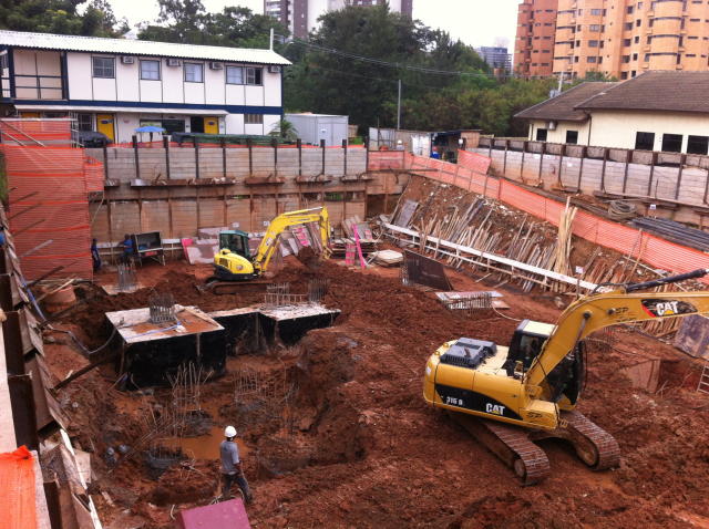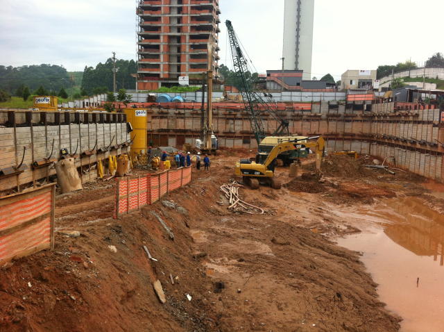 | - Foto em 31/10/13 - Escavação e cortinas executadas até o 2o.SS, e incio das estacas escavadas. | |